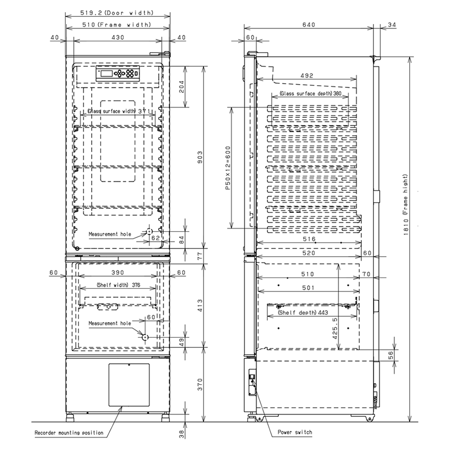 510 x 640 x 1810 mm
