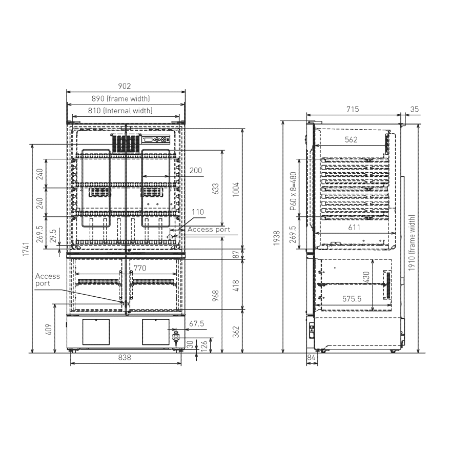 External Dimensions (W x D x H) 890 x 715 x 1910 mm