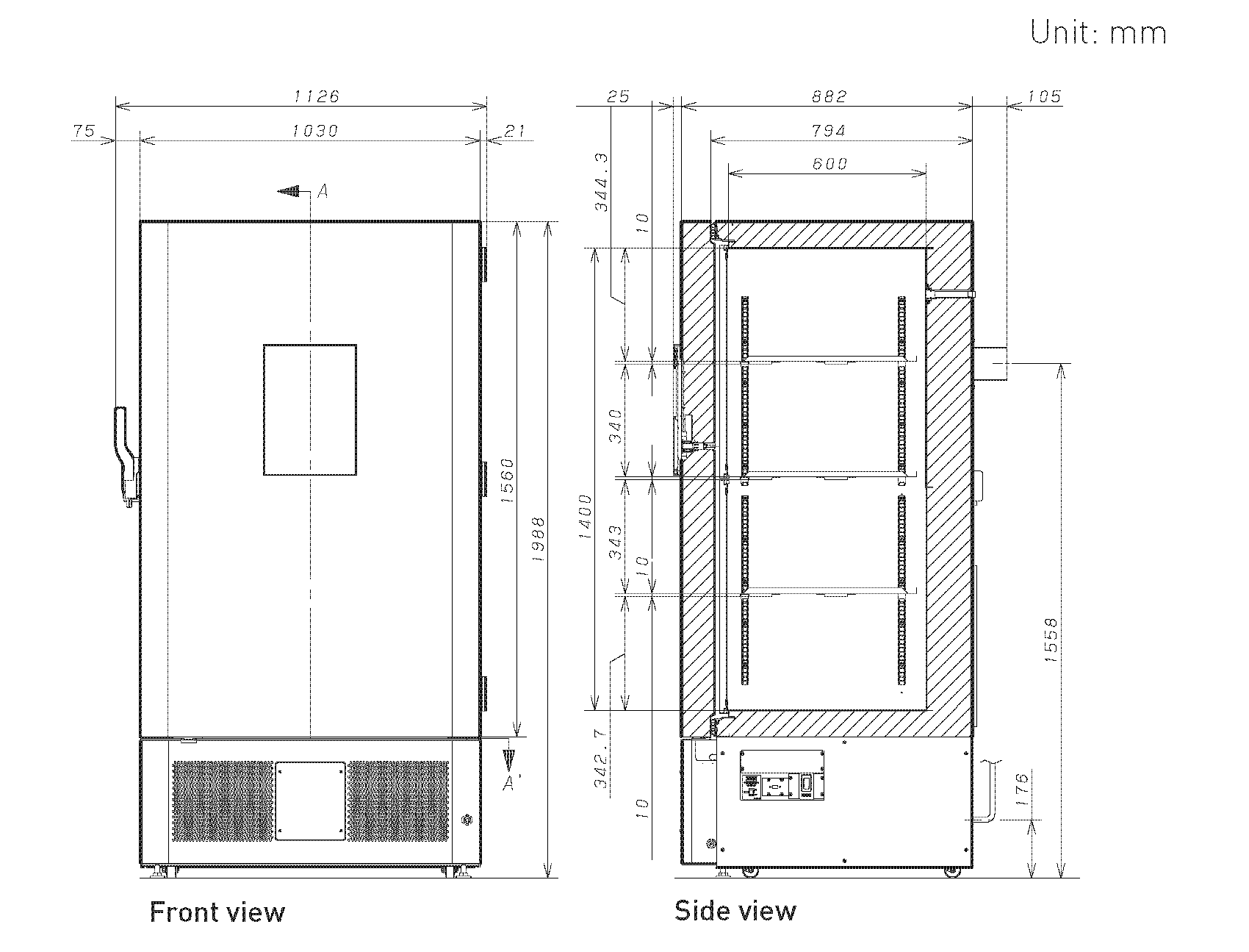 The enhanced cabinet design with chamfered edges reduces footprint for use in multi freezer laboratories.