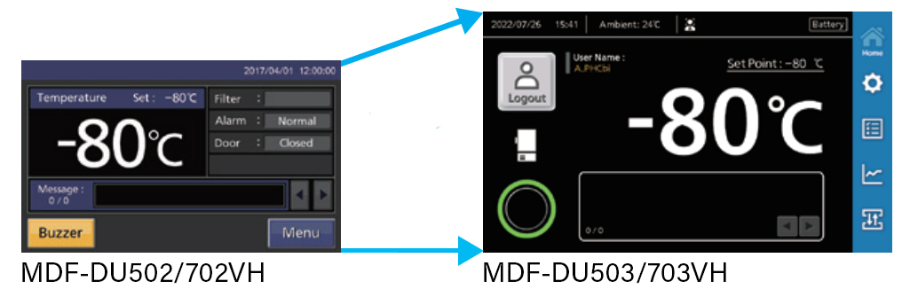 The newly designed control panel with rearranged layout and icons greatly enhances usability. The touchscreen method has also changed from the resistive method to the capacitive method, enabling comfortable use even with lab gloves on.