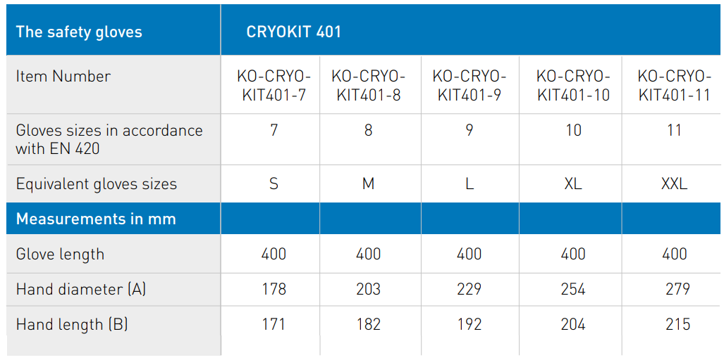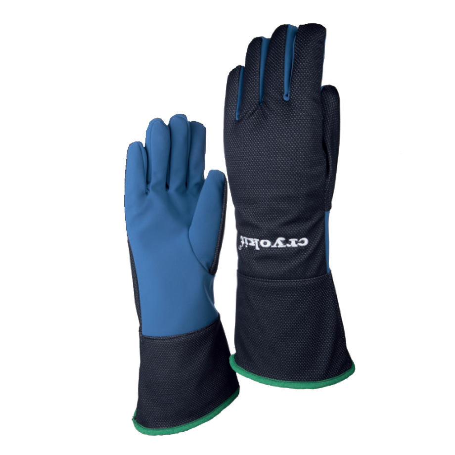 CRYOKIT® GLOVE es un guante totalmente impermeable para la protección de la mano y el brazo en operaciones que impliquen el uso de nitrógeno líquido (u otros gases criogénicos). Gracias a sus materiales compuestos especialmente diseñados para esta aplicación, mantiene las manos calientes y secas incluso cuando se utiliza durante períodos prolongados. Se ha probado con éxito poniéndolo en contacto con nitrógeno líquido (–195,82 °C) durante un minuto y también su flexibilidad (método de prueba RCT). La construcción en varias capas permite un elevado nivel de protección térmica, flexibilidad y destreza a –200 °C.