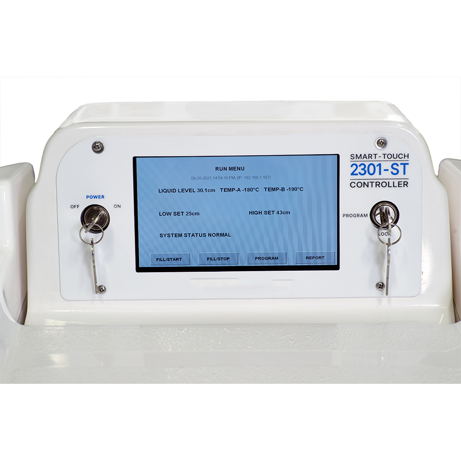 Isothermal Freezers feature the Series 2301 Auto-fill and Monitor System, which controls the automatic filling of the liquid nitrogen jacket and provides the user with an easy to read overview of the freezer temperature and status.