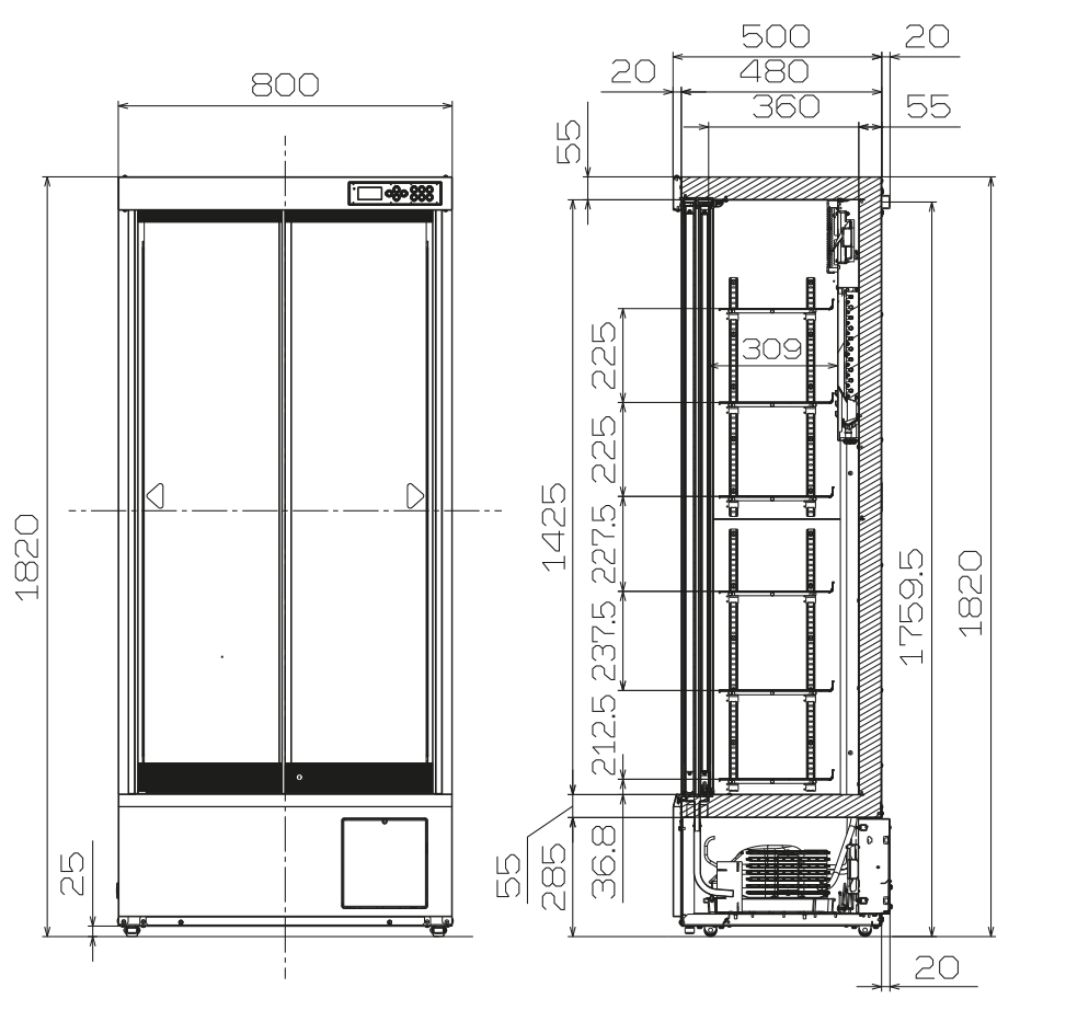 Double glass separated by an extra wide 12 mm gap contains argon gas to protect sample from exterior heat. Combined with air blowing up from the chamber bottom, the unit completely safeguards samples and maximise energy efficiency.