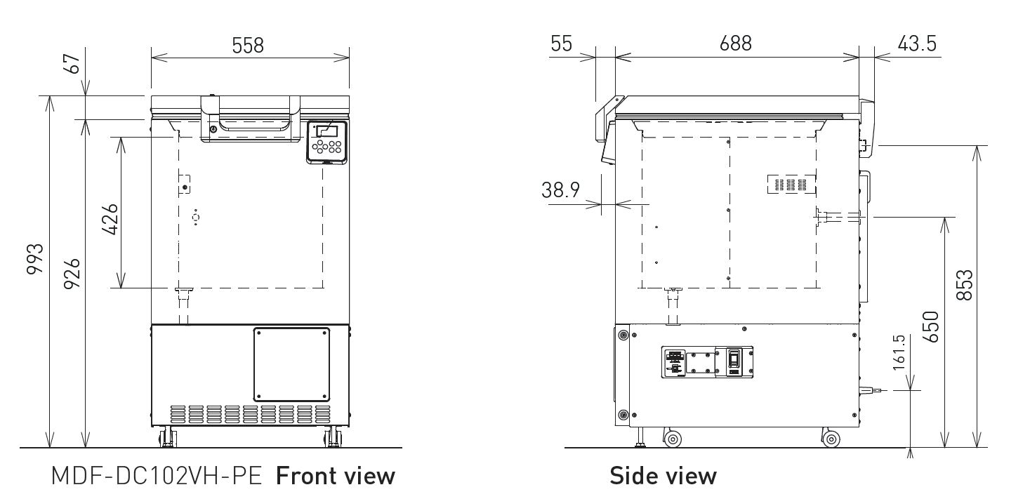 The use of patented VIP PLUS panels within the freezer cabinet provides a reduced wall thickness for maximum interior volume. This technology allows the MDF-DC102VH-PE to require a small installation space with a great storage capacity.