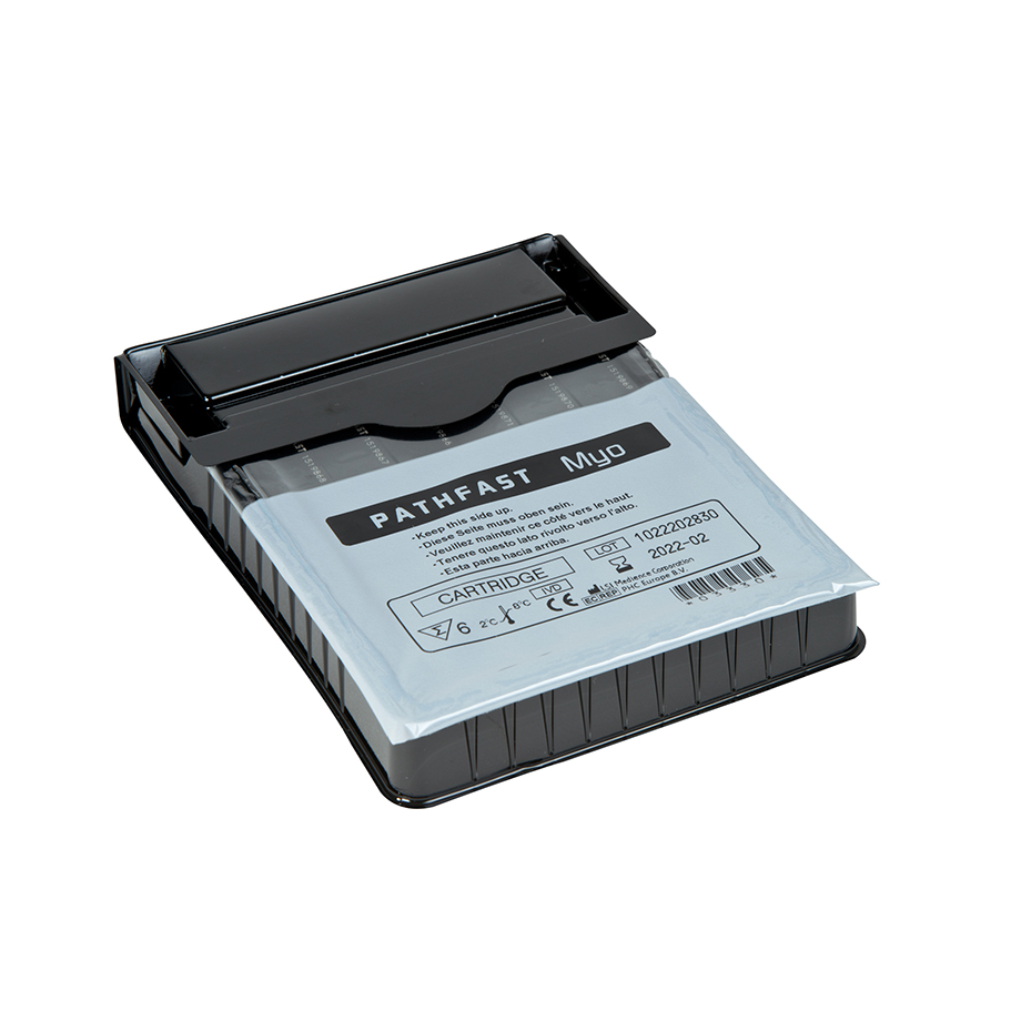 PATHFAST™ Myo is a product for in vitro diagnostic use with the in vitro diagnostic system PATHFAST™ for the quantitative measurement of Myoglobin in heparinized whole blood and plasma. The result obtained with the assay is used to assist in the diagnosis and especially in the exclusion of acute myocardial infarction. Myoglobin (Myo) is a low molecular weight, heme-protein found in both cardiac and skeletal muscle. Following myocardial necrosis associated with acute myocardial infarction (AMI), myoglobin is one of the first markers to rise above normal levels, increasing measurably above baseline within 1-3 hours post infarction, peaking at 6-12 hours and returning to baseline within 24-36 hours. In the absence of skeletal muscle trauma or other situations associated with a non cardiac related increase in circulating myoglobin (e.g. renal failure), measurement of myoglobin in blood has been used as an early marker of AMI. Several studies proved that the measurement of myoglobin can be used as a rapid and sensitive test in the early phase of AMI for its diagnosis in conjunction with the ECG and for exclusion of myocardial infarction in patients presenting with acute chest pain, especially after a further negative test one hour later.