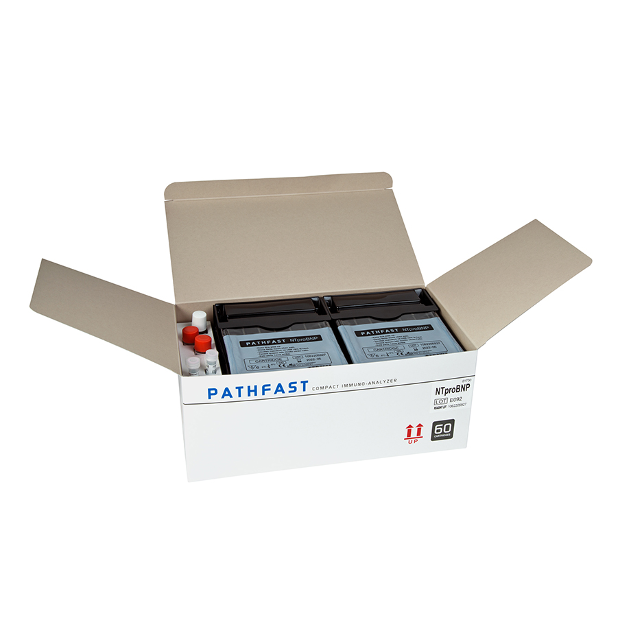 PATHFAST™ NTproBNP is an immunoassay for the in vitro quantitative determination of N-terminal pro-B-type natriuretic peptide (NTproBNP) in anticoagulated whole blood and plasma on the PATHFAST™ analyzer. PATHFASTTM NTproBNP can be used as an aid in the diagnosis in patients suspicious for congestive heart failure, the detection left ventricular dysfunction of and in the assessment of the severity of congestive heart failure (CHF). PATHFAST™ NTproBNP can also be used in the risk stratification in patients with acute coronary syndromes (ACS) and congestive heart failure and for monitoring the therapy in patients with left ventricular dysfunction. NTproBNP allows rule out of heart failure due to consistent and very high negative predictive values and has also proven as a prognostic marker in severe sepsis and septic shock. In patients with stable coronary artery disease NTproBNP is strongly associated with the cardiovascular outcome. NTproBNP is valuable in the identification and exclusion of acute heart failure of dyspneic patients presenting in the emrgency department. NTproBNP is also related to the long-term outcome presenting in the emergency department with and without cardiovascular impairment. NTproBNP also identifies subjects with rheumatoid disease who are at risk for cardiovascular morbidity and mortality. Stdudies have shown that NTproBNP is useful as a simple non-invasive method of screening patients with arthritis before starting or continuing therapy with non steroidal anti-inflammatory drugs (NSAIDs).