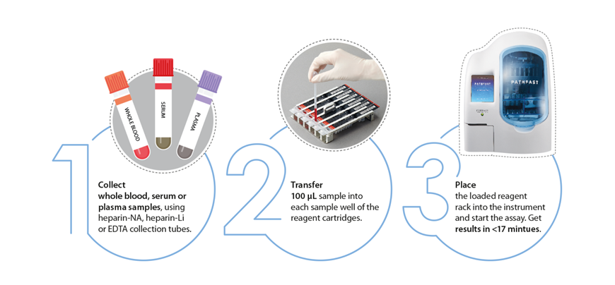 With its easy and intuitive design, PATHFAST™ offers an easy way to analyze your patient samples by performing only 3 simple steps.