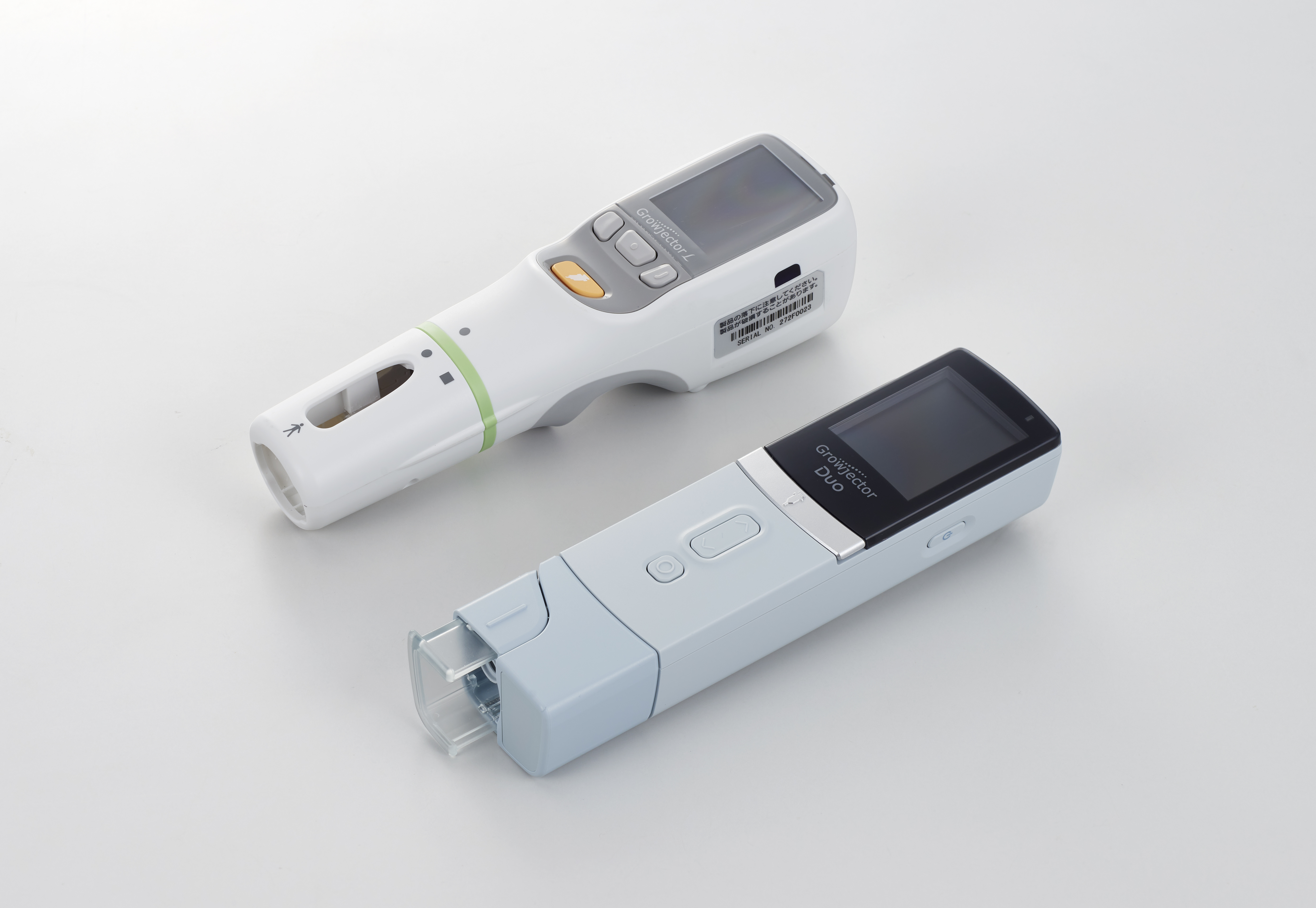 GROWJECTOR® Duo, which is manufactured by PHC IVD, is a motorized digital injector used exclusively to administer subcutaneous injections of the recombinant human growth hormone GROWJECT® 6mg and 12mg*2 which is manufactured and marketed in the Japanese market only by JCR.
