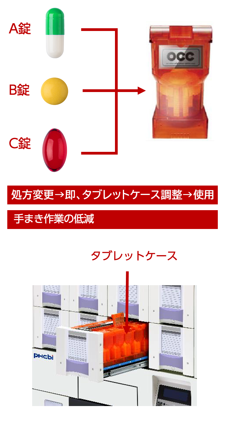 様々な錠剤に対応可能な汎用タブレットケース。突然の処方変更にも調剤現場で対応可能