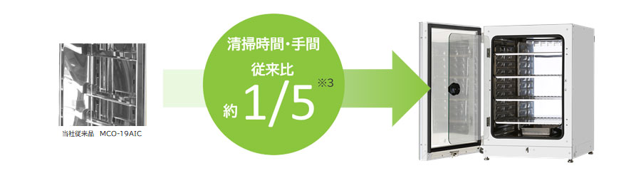抗菌効果が高く耐腐食性も兼ね備えたPHCbi独自の銅合金ステンレス鋼を、器内表面・ダクトカバー・加湿トレイカバー・加湿トレイなどの内装部品に採用することで、扉の開閉などによって器内に侵入する汚染物質が器内表面で増殖することを防ぎ、高いコンタミネーション予防効果が発揮されます。
