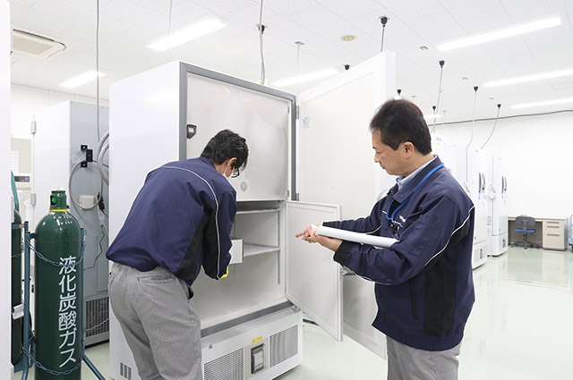 液体窒素タンク保管からサービスを開始し、保管対象、顧客要望によって様々な温度帯での管理が必要となり、2017年、PHCbiの超低温フリーザーを導入した。
