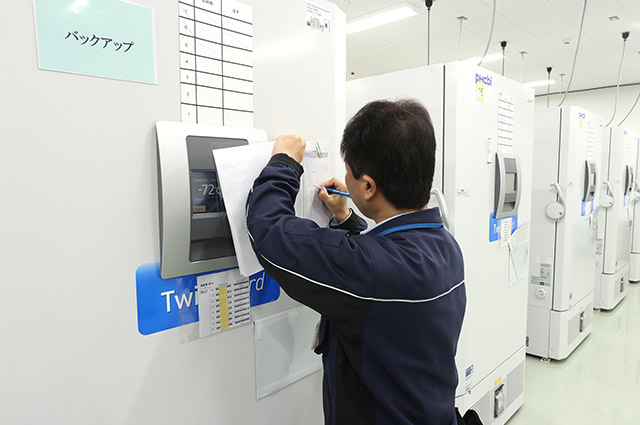 現在は北海道から九州まで約40社と契約。すべて医療・製薬関係の企業で、保管対象は細胞、ヒト検体が8割。残りの2割は医薬品原料や治験薬原料などだという。