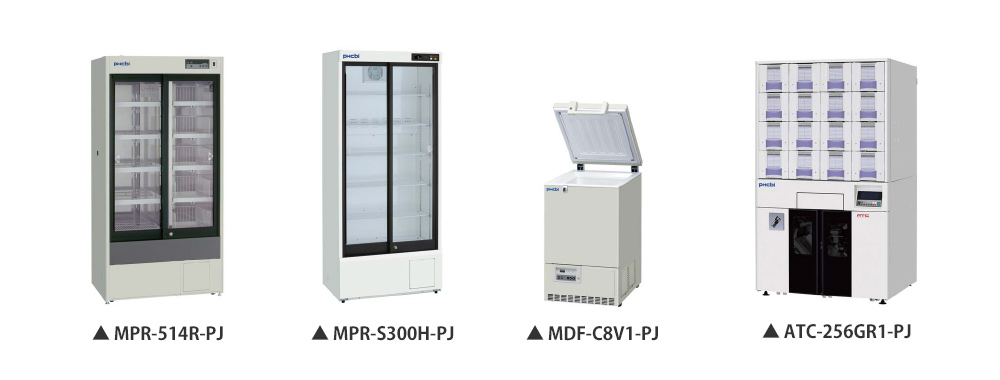 ・薬用保冷庫:MPR-S312DCN-PJ x 2, MPR-514R-PJ, MPR-S300H-PJ