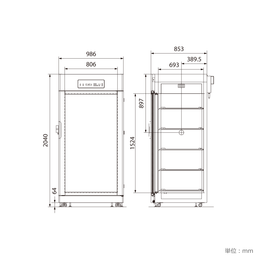 - 全面二重ガラスドアで培養中サンプルの観察が容易です。