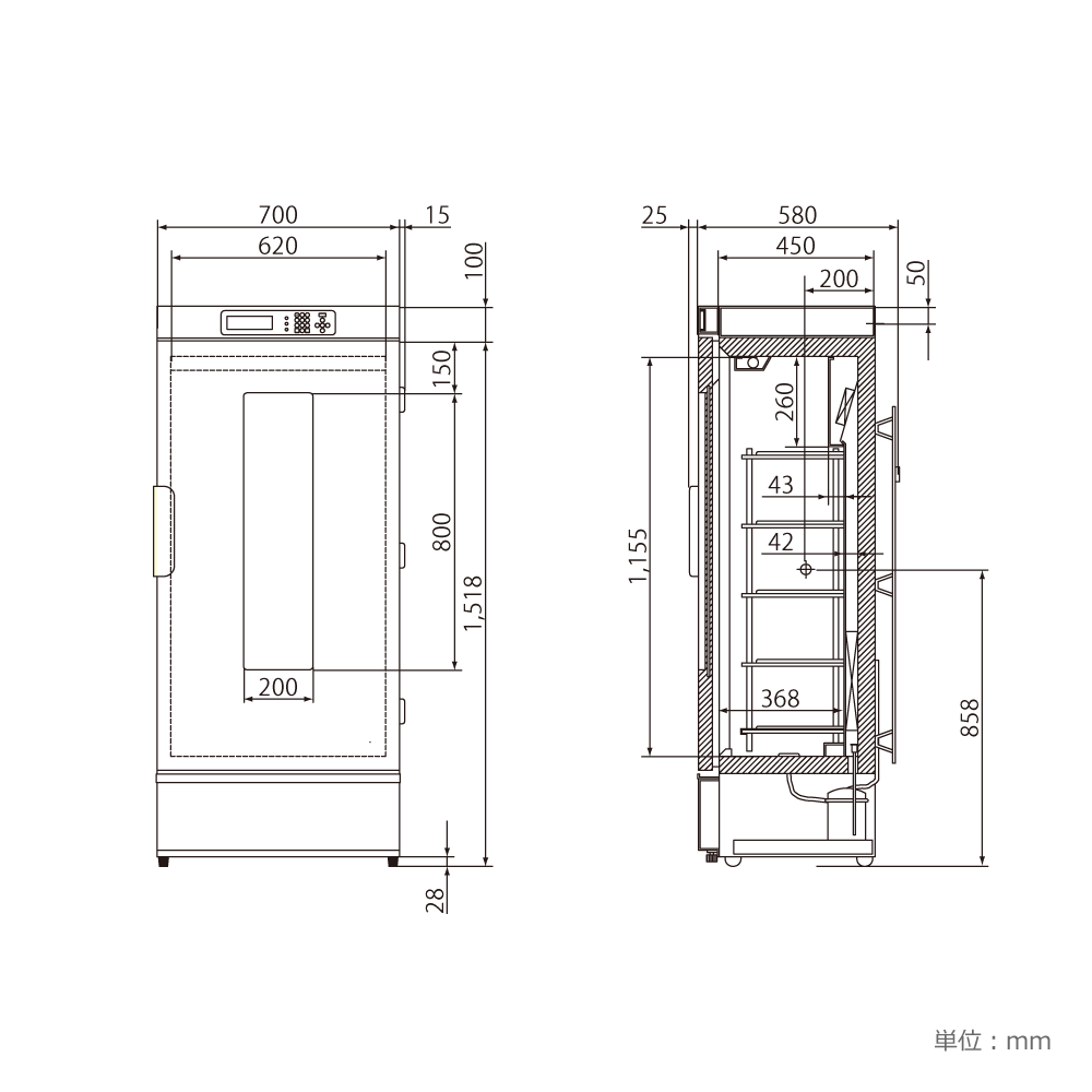 W700 × D580 × H1618 mm