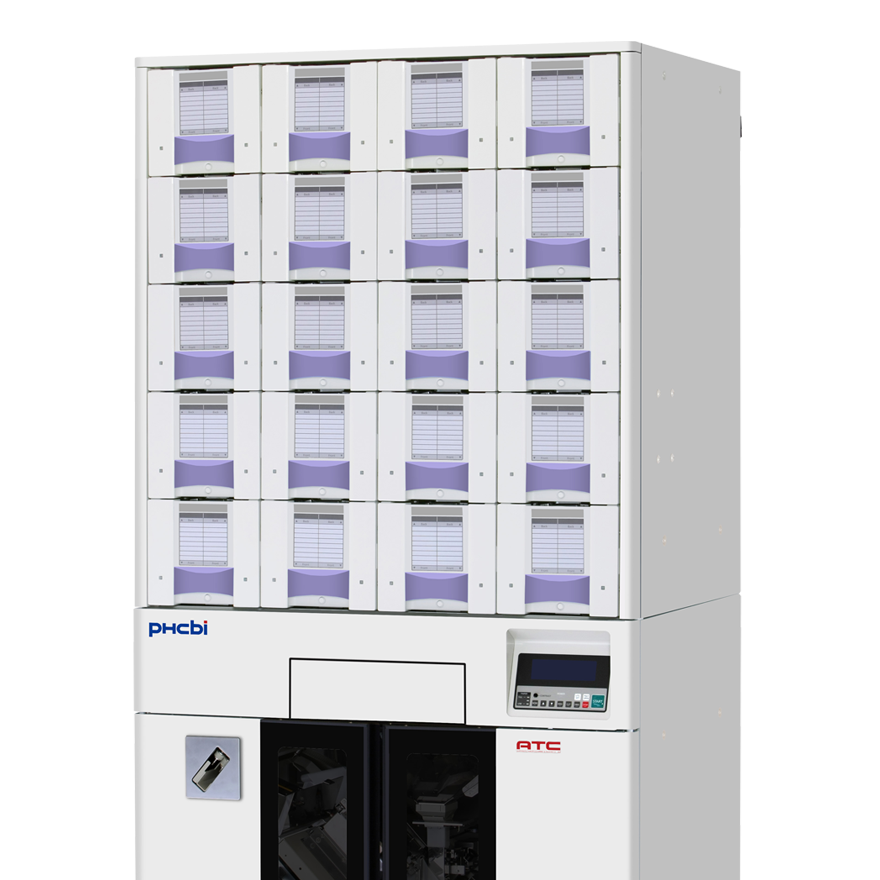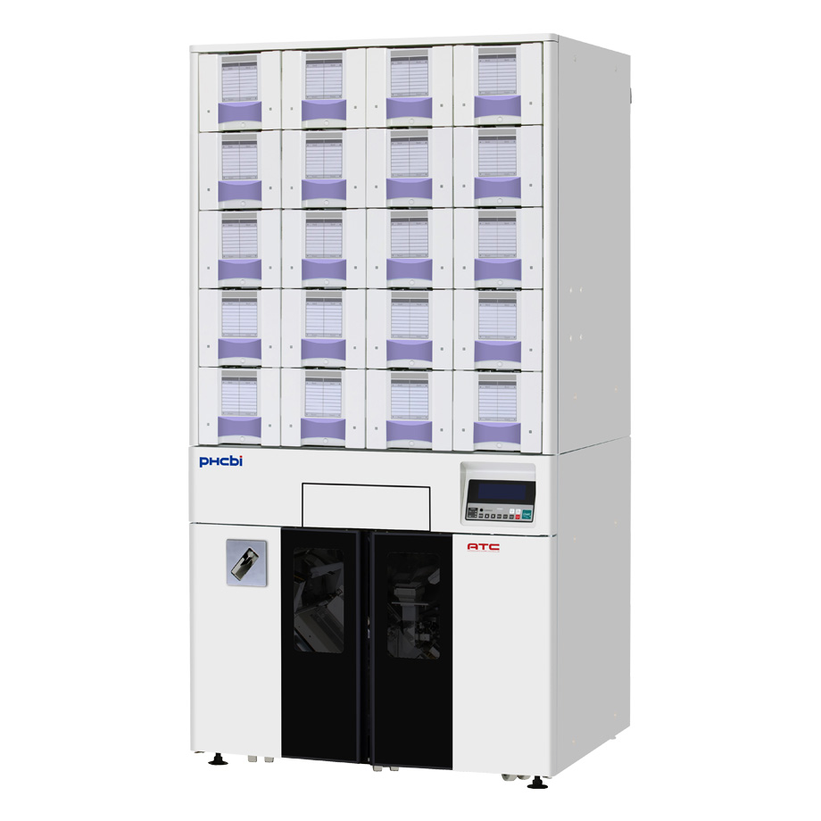 薬剤収納・包装部_UTC 128セル(2段式)、手まき案内多色LED表示付