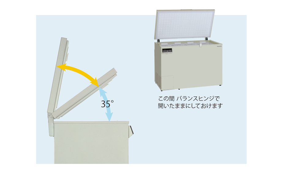 使いやすいコントロールパネル。出し入れを助けるバランスヒンジの採用。不揮発メモリーの採用で停電時にも保護される設定など、細部まで使い易さを追求しました。