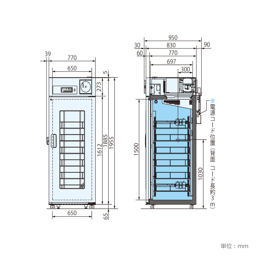 【ご注意】 ※ 本製品の各データは、当社基準で測定しております。 ※ 上記寸法は取手等の突起物を含みません。搬入時の必要寸法については寸法図をご参照ください。