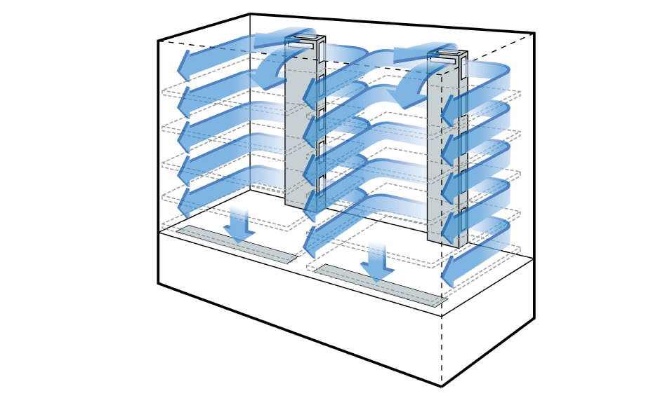 • 各部を均等に冷やし温度ムラが少ないマルチフローダクト