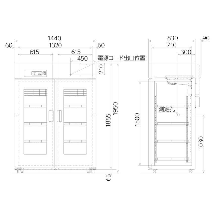 また、庫内実験用電源として、サービスコンセントを2口、本体上部へ配置、簡単に配置できます。