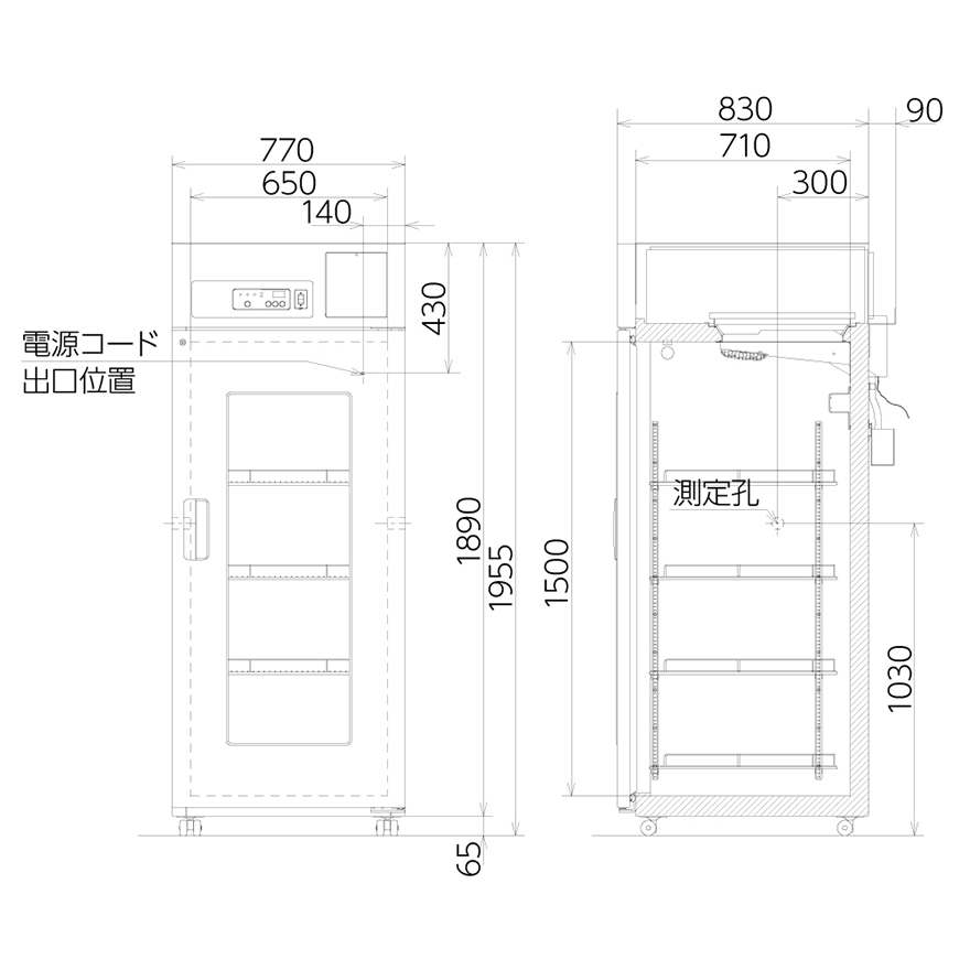 内形寸法 W650 × D710 × H1500 mm
