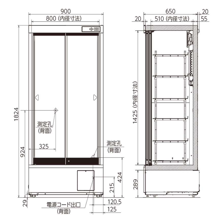 W800 × D510 × H1425 mm
