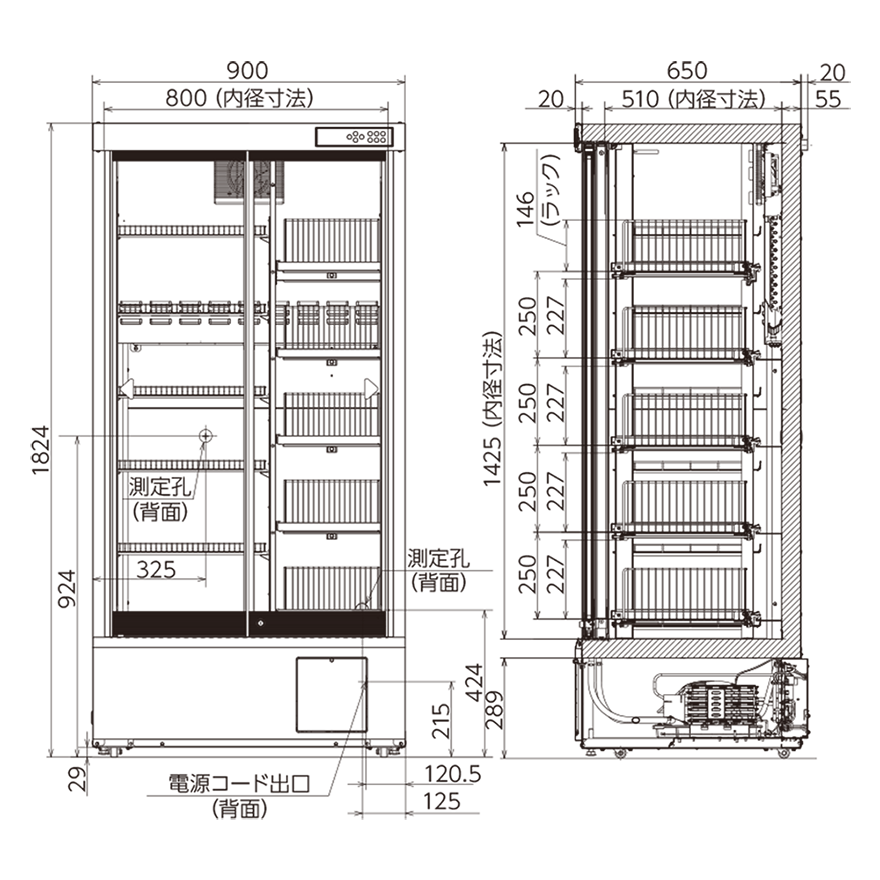 W800 × D510 × H1425 mm