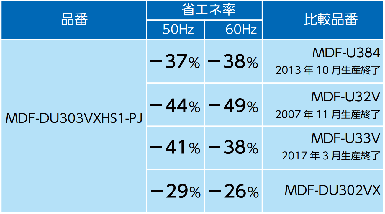 設定温度-40 ℃~-5 ℃(初期設定-10 ℃) ステータスインジケータ―橙点滅 庫内温度表示点滅、二次元バーコード表示 約15 分遅延後、ステータスインジケータ―赤点滅、ブザー断続音、遠隔警報出力、二次元バーコード表示