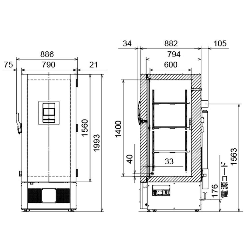 W790 × D882 × H1993 mm