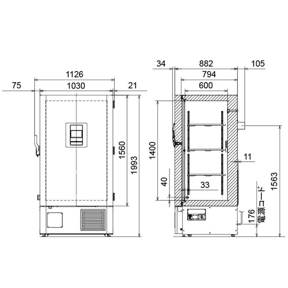 -85 ℃ ~ -50 ℃(周辺温度:5 ℃ ~ 30 ℃・無負荷)
