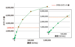 ステイシアCLEIA IL-2R 臨床的意義 非ポジキンリンパ腫(NHL)、成人T細胞性白血病(ATL)の病態、治療効果の判定、経過観察に有用です。 各種データ 測定原理 1Stepサンドイッチアッセイ(CLEIA法) *Applied Biosystems, LLCの商標です 同時再現性 (n=10) (U/mL) 検体 管理検体L 管理検体M 管理検体H Mean 263 1790 27621 Max 280 1882 28888 Min 249 1637 26594 Range 31 245 2294 SD 6.33 52.13 586.67 CV 2.4% 2.9% 2.1% 同時再現性 (n=10) (U/mL) 検体 管理検体L 管理検体M 管理検体H Mean 274 1845 28708 SD 5.87 55.72 623.14 CV 2.1% 3.0% 2.2% オンボード試験 最小検出感度 測定範囲(上限) 112,695U/mLの標準品IL-2Rを含む血清を用いた。 プロゾーン 直線性(検体) 検体種の影響 他法との相関 参考基準範囲 参考基準範囲:121~613U/mL(n=487) (U/mL) Mean 307 Max 768 Min 87 製品概要 商品コード 製品名 構成 包装 756511 ステイシアCLEIA IL-2R (1)検体希釈液(R1) 5.0mL × 1 製品番号 (2)磁性ラテックス試薬(R2) 2.5mL × 1 RM75-651SK (3)酵素標識抗体試薬(R3) 5.0mL × 1 商品コード 製品名 構成 包装 750083 基質液(R5) 基質液(R5) 125mL × 1 製品番号 RM75L-001 商品コード 製品名 構成 包装 756528 ステイシアIL-2R キャリブレーターセット※ キャリブレータ―(5濃度) 液状品 1.0mL×1 ×5濃度 製品番号 RM75S-651SS 商品コード 製品名 構成 包装 756535 ステイシアIL-2R コントロールセット※ コントロール(2濃度)液状品 1.0mL×3 ×2濃度 製品番号 RM75C-651SS ※ロットによって表示値が異なります。