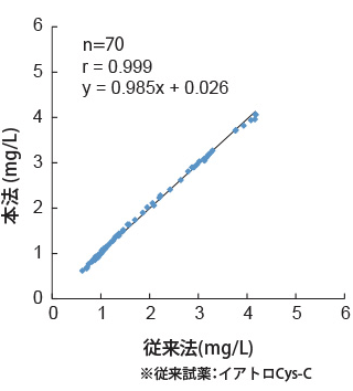 腎機能マーカーとしてのクレアチニンが筋肉量の影響を受けたり男女差がみられるのに対し、シスタチンCはそのような性質がなく、糸球体濾過量(GFR)の測定に優れています。