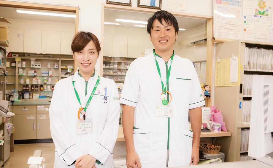「患者さんの年齢層は幅広く、例えば年少の患者さんにも分かりやすいように代表的な薬の飲み方を表にまとめたり、処方薬数が多い高齢の患者さんの場合は相互作用や重複のチェック、残薬確認などに留意し、丁寧に服薬指導することを心がけています」と同店薬局長(管理薬剤師)の山本将裕先生は話します。また、きめ細かい服薬指導や情報提供を行うには、医療機関との連携が何よりも重要だと考える山本先生は、主応需医療機関の医師とは頻繁に面談を重ね、情報を共有できる関係を構築しているそうです。