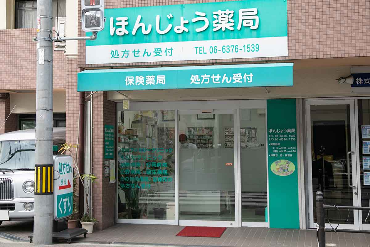 2008年2月に移転開局したほんじょう薬局は、日本一長いと称される天神橋筋商店街の起点に位置し、繁華街・梅田に挟まれた本庄地区で約100医療機関から月平均700~800枚の処方箋を応需する保険薬局です。卒業した薬科大学の大学院から製薬メーカーの研究職を経て薬局を継いだ草分陽一先生と、1986年に同地区で自宅ガレージを改装して薬局を創業した母親の孝子先生の2人で運営しています。