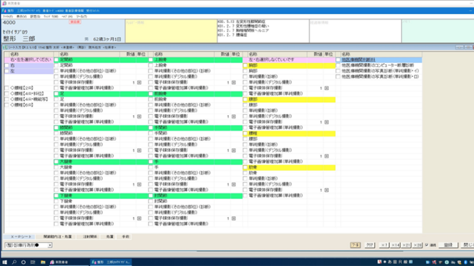 レントゲン撮影のように入力内容が複雑なものやコメントを忘れがちなものをシートに登録することでミスを防ぎます。