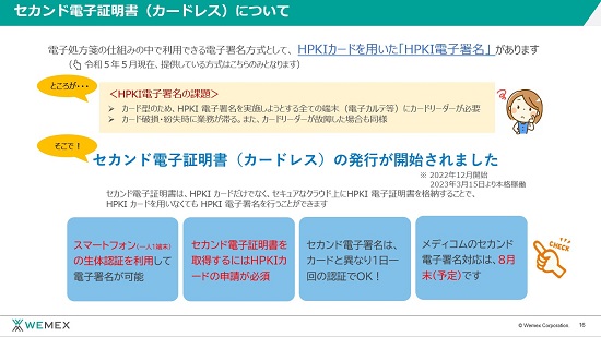 ※今後の電子処方箋の厚生労働省による仕様の進捗により、内容が変わる場合はございます。 出典:厚生労働省ホームページ(https://www.mhlw.go.jp/stf/denshishohousen.html) 電子処方箋ページ(厚生労働省)(https://www.mhlw.go.jp/stf/denshishohousen.html)の内容をもとに、ウィーメックス株式会社で独自に解釈、編集したものです。