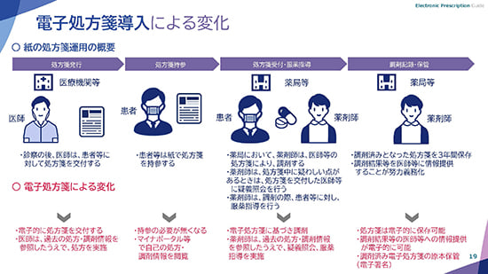 ※今後の電子処方箋の厚生労働省による仕様の進捗により、内容が変わる場合はございます。 出典:厚生労働省ホームページ(https://www.mhlw.go.jp/stf/denshishohousen.html) 電子処方箋ページ(厚生労働省)(https://www.mhlw.go.jp/stf/denshishohousen.html)の内容をもとに、ウィーメックス株式会社で独自に解釈、編集したものです。