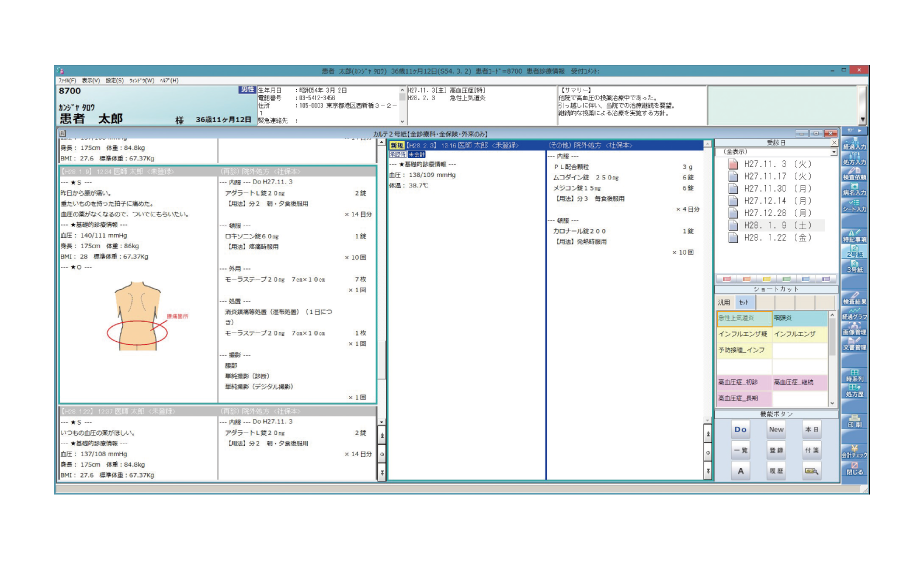 また、医事一体型電子カルテにより、医薬品・診療行為等のマスターを一元管理しているため、システムの導入時や法令改正時におけるマスターメンテナンスの手間もかかりません。