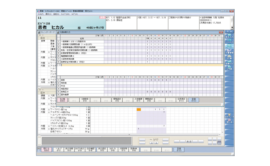 入院受付や入院会計にも対応し、入院事務もスピーディーに処理します。
