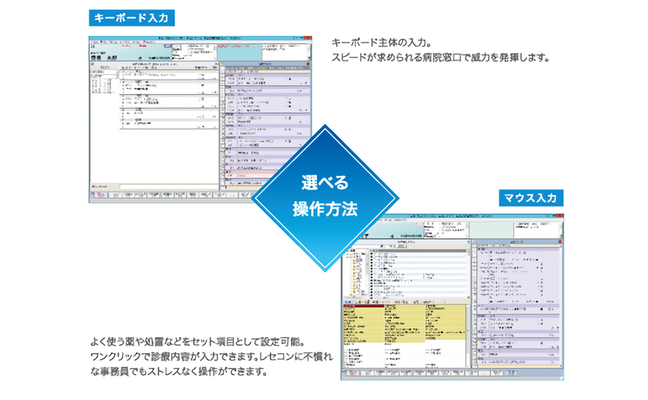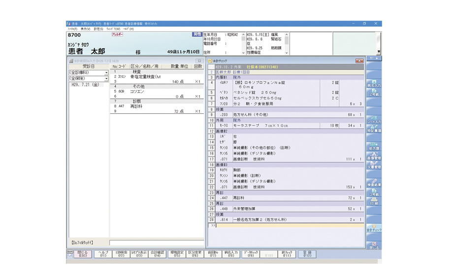 窓口業務や会計業務はもちろんのこと、複雑に変化する算定ルールを迅速にとらえ、膨大なレセプトを素早くチェックし、正確なレセプト作成を支援する機能を充実。