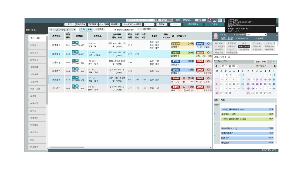 診療情報を俯瞰できる「診療カレンダー」標準搭載