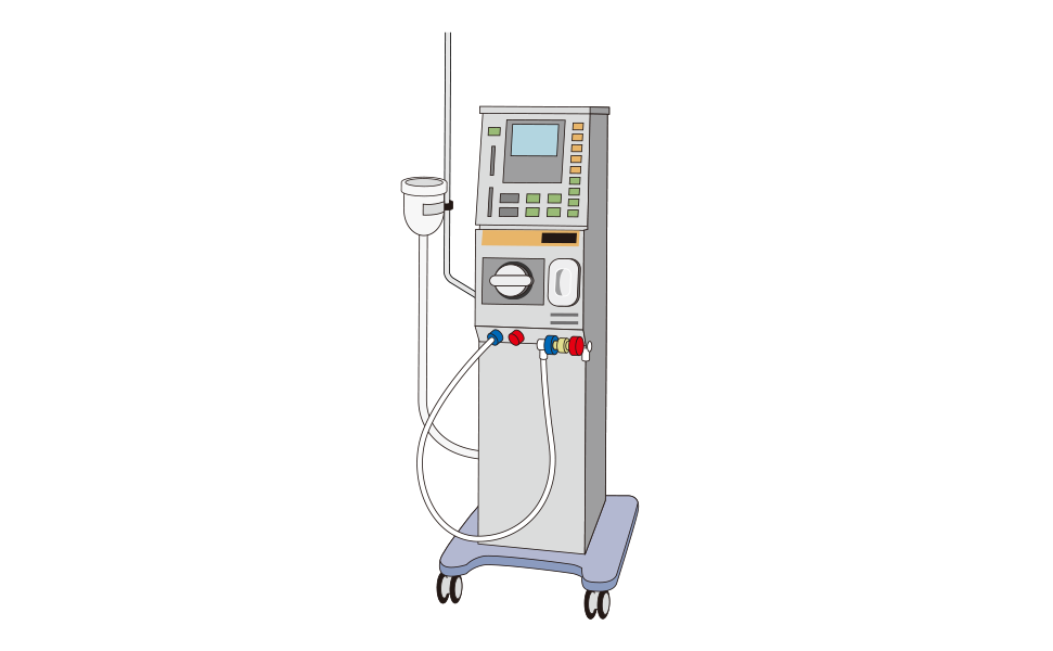 血液透析とは体外に取り出した血液を透析器に通し、血液中の老廃物を除去して、血液をきれいにする治療法。週3回、1回4~5時間かけて治療するのが一般的で、透析業務の効率化や安全性の向上のために一連の流れを監視する透析管理システムを導入している病院やクリニックも多い。<br> 近年、メディコムの電子カルテは、患者さんのベッドサイドにあるこの透析管理システムとの連携を実現させた。透析の分野での連携は他社でも前例が数少なく、画期的なことだった。<br> これまで、透析業務は、継続指示と繰り返し治療が多く、極端な言い方をすれば「血液をろ過して帰るだけ」のルーチンワークだと考えられてきた。<br> そのため、透析記録をカルテと位置づけ、カルテには「特変なし」などのコメント記載だけというケースもしばしばだった。<br> ところが、電子カルテと連携してみると、思いもよらないメリットが浮上してきたのである。