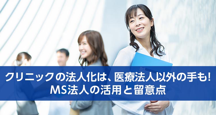 「MS法人」とは、メディカル・サービス法人の略で、「クリニックは医療行為(非営利事業)に特化し、非医療行為を切り出して法人化することを目的」としています。クリニックを一括りにして管理せず、医療行為とそれ以外を分けて経営することが、MS法人の事業目的です。