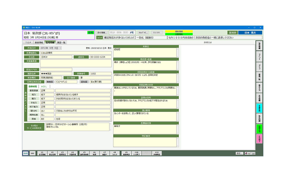 在宅患者訪問薬剤管理指導に必要な、在宅特有の情報を記録・管理することができます。