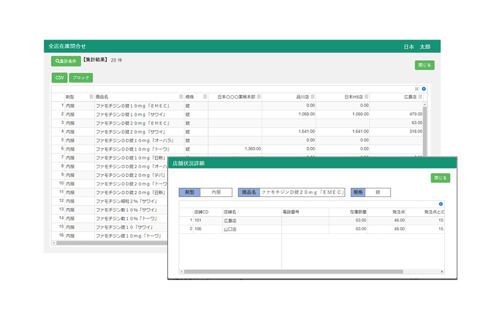 チェーン薬局の各種データをクラウド上で集計・管理。多店舗の運営の効率化や、スピーディな経営判断を支援します。