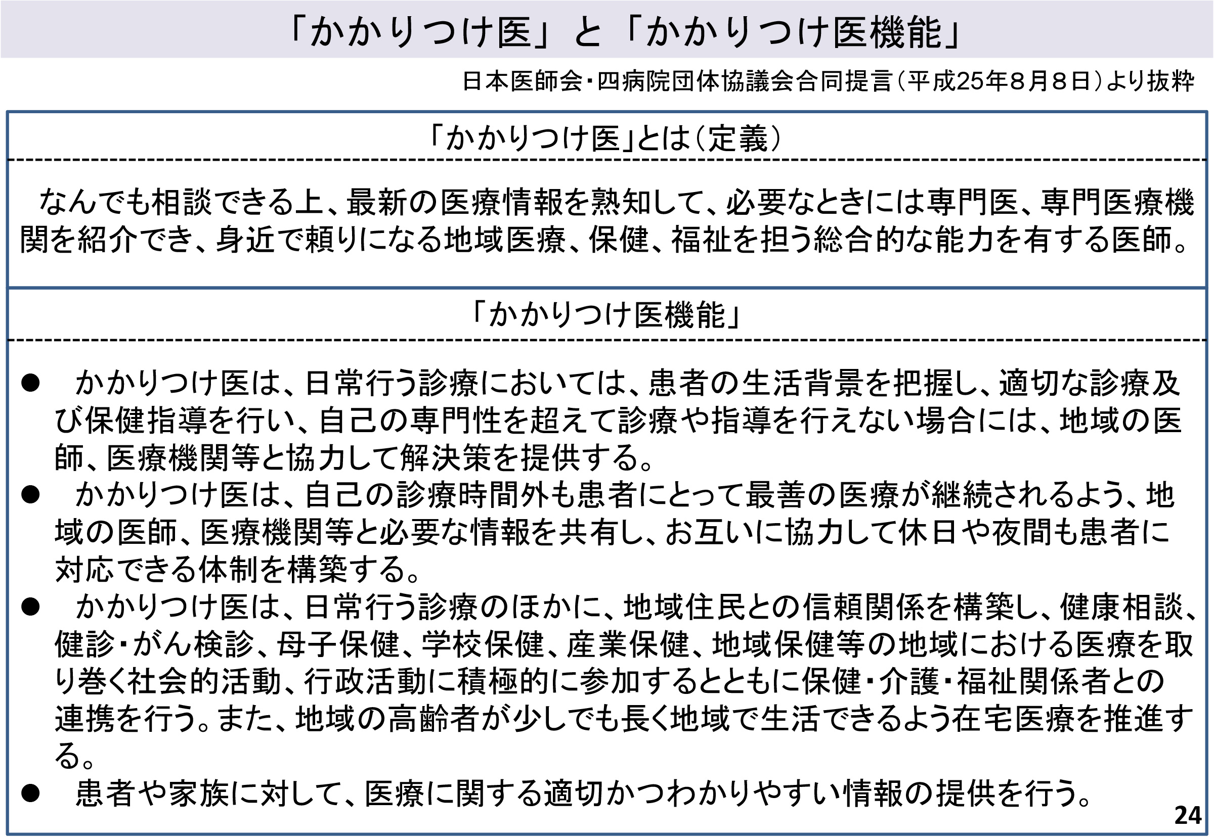 また、認知症については、早期に専門医療機関での診断・治療が必要であるが日常においてもかかりつけ医がフォローすることが重要であるという観点から、専門医とかかりつけ医の連携強化のための取り組みに焦点がおかれる模様。