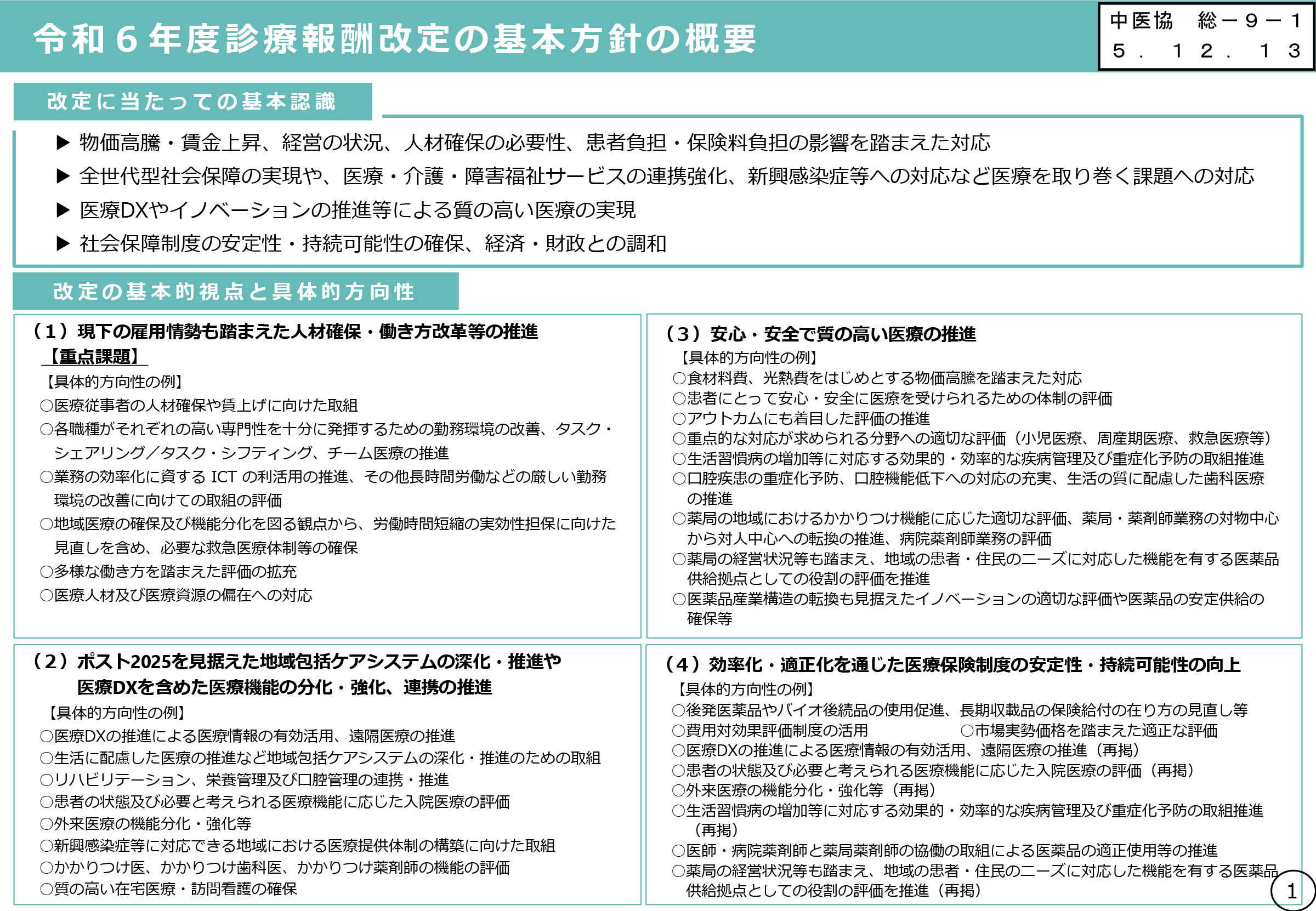 「中医協個別改定項目」より【ダイジェスト】