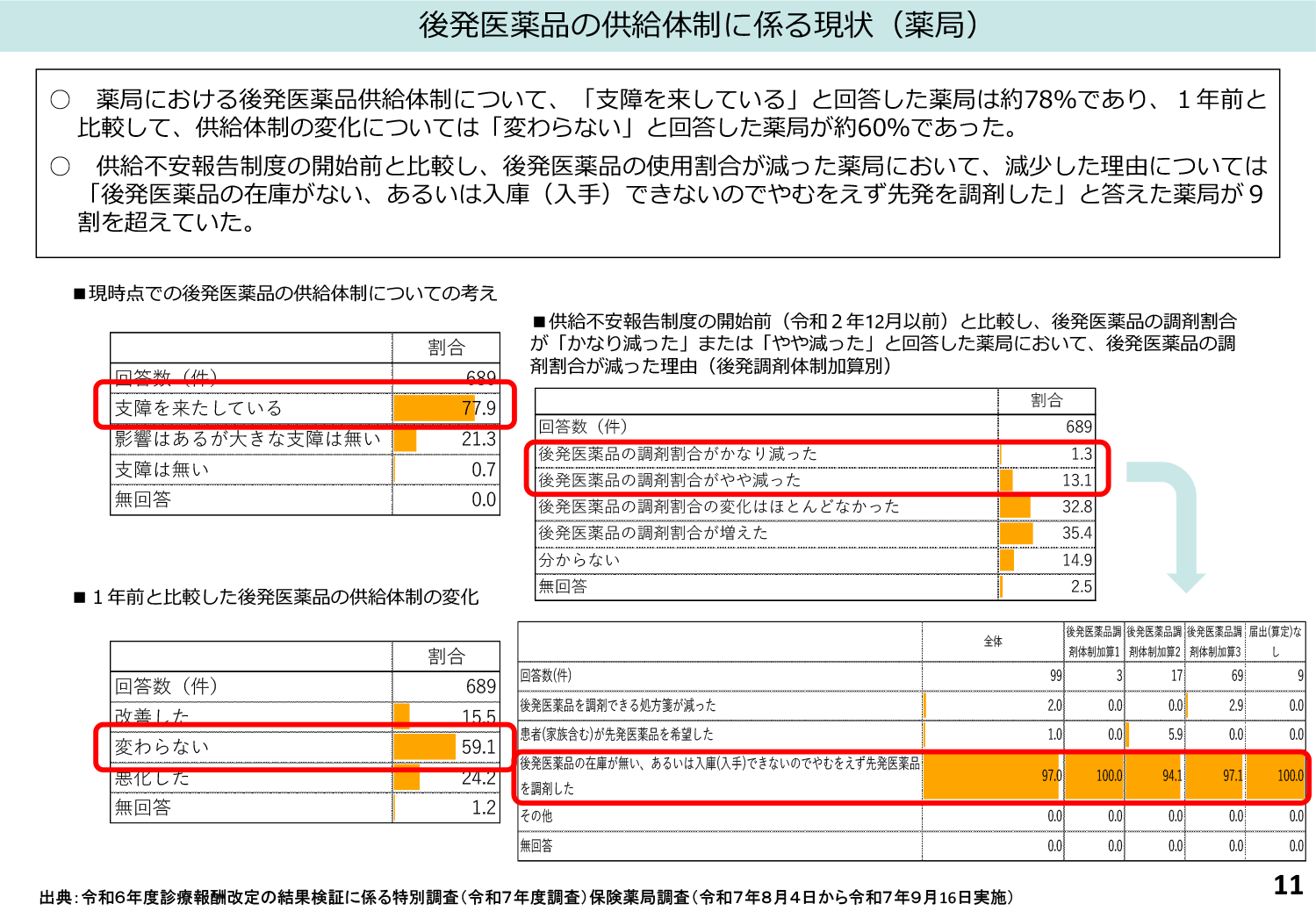 ◆後発医薬品については、近年の供給不安を踏まえ、今改定では「安定的供給体制の確保」へ重点が移行する見込み。具体的には、医療機関・薬局ごとに安定供給確保のための体制構築を評価する方向。また薬剤供給不足により変更が生じた際、患者への説明や情報提供を適切に実施できる体制整備も求められる見通しとなっています。従来の「数量ベースの評価」から、「品質・体制・説明責任」を含む包括的な評価体系への転換が図られる方向で検討が進められています。