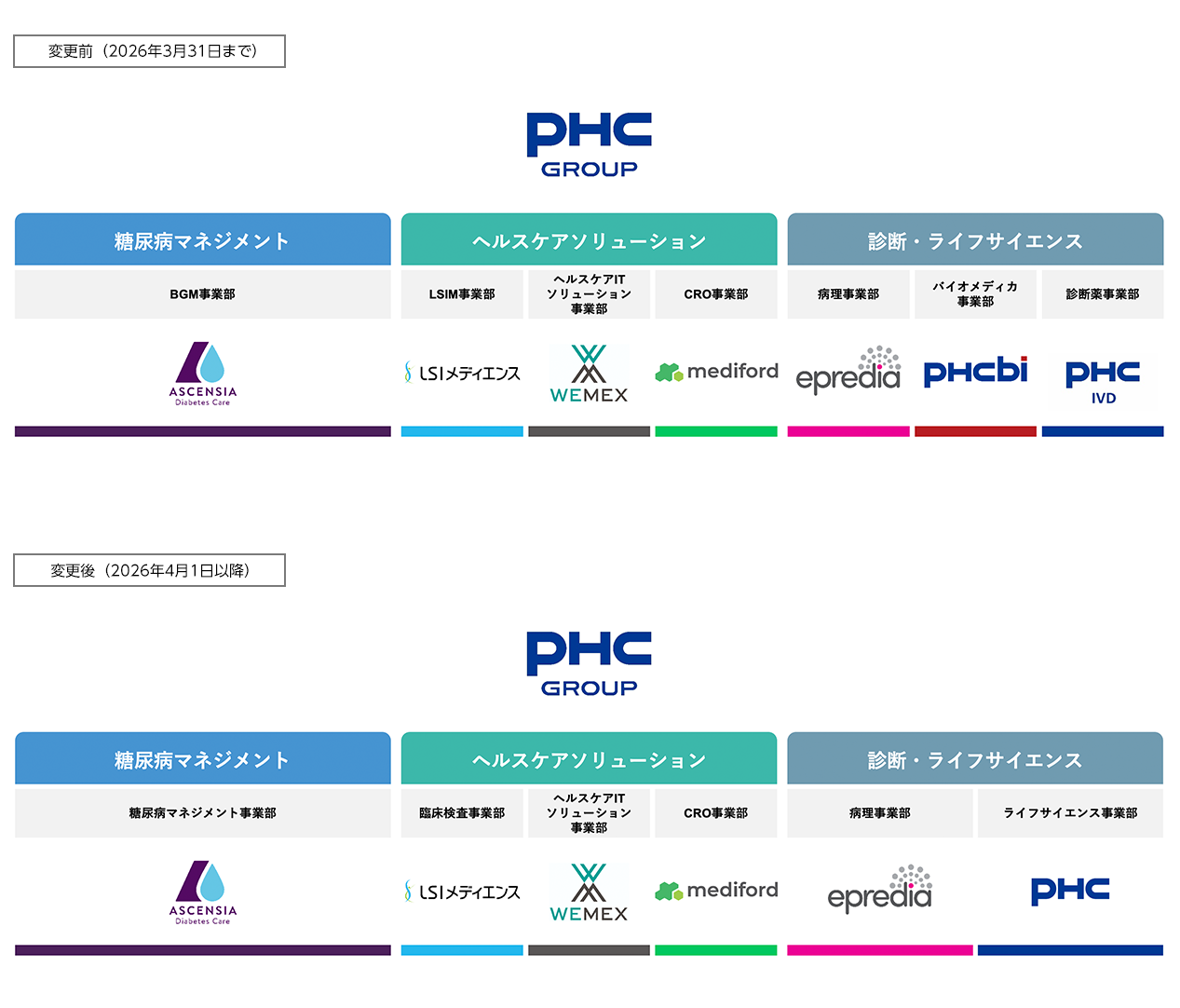 PHCグループは、2026年4月1日付で、一部の事業部の名称を以下の通り変更いたします。