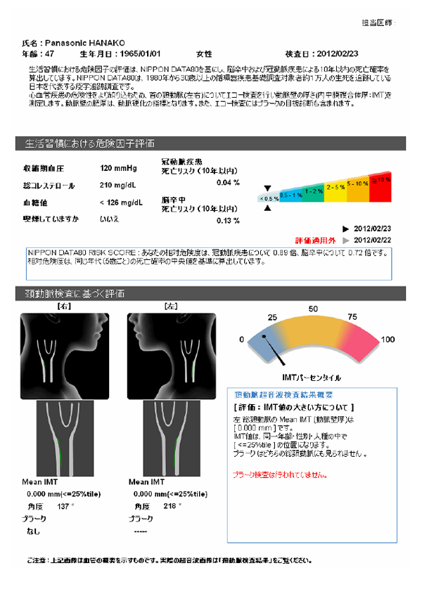 動脈硬化の検査と管理、生活習慣の指導に 頚動脈内中膜厚(IMT)測定に加え、精度の高い脳卒中・冠動脈疾患のリスク判定を行う 超音波診断装置「CardioHealth Station」を発売 日本人の体質や生活習慣に基づいた脳卒中・冠動脈疾患リスクをレポート